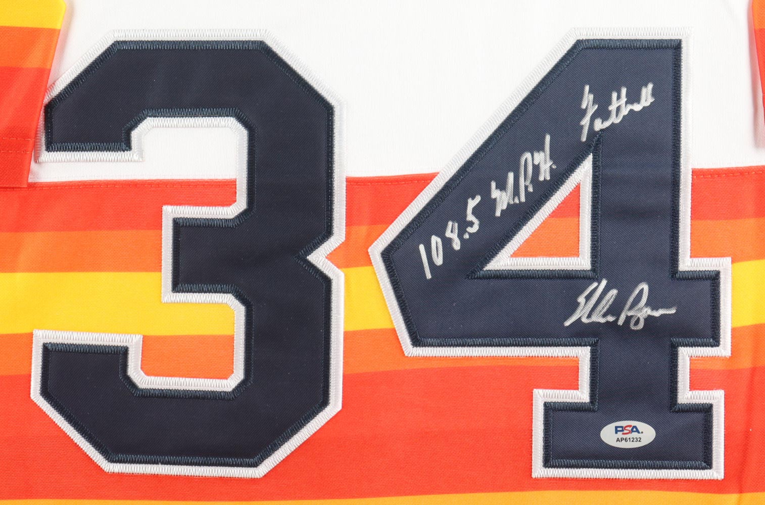 Nolan Ryan Signed Custom Framed Jersey Display Inscribed "108.5 M.P.H Fastball" with (3) Ryan Pins (PSA)