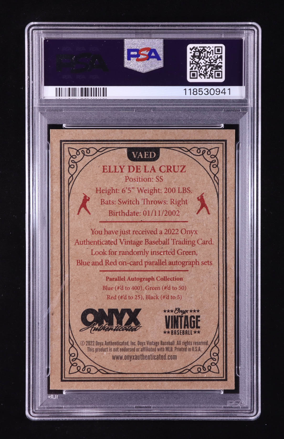 Elly De La Cruz Signed 2022 Onyx Vintage Extended Autograph-Blue #VA-ED RC (PSA | Autograph Graded PSA 10)