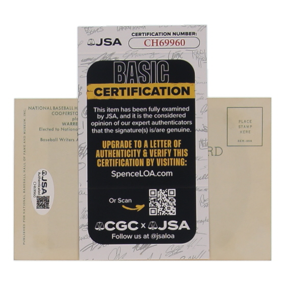 Warren Spahn Signed Hall of Fame Plaque Postcard (JSA)
