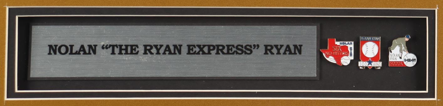 Nolan Ryan Signed Custom Framed Jersey Display Inscribed "The Ryan Express" with (3) Stat Pins (PSA)