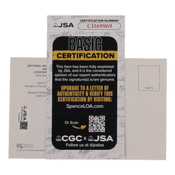 Carlton Fisk Signed Hall of Fame Plaque Postcard (JSA)