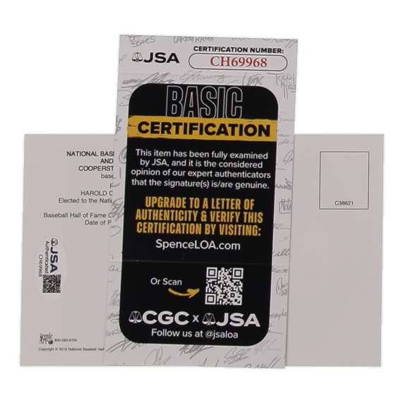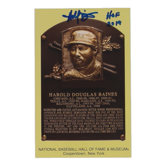 Harold Baines Signed Hall of Fame Plaque Postcard Inscribed "HOF 2019" (JSA)