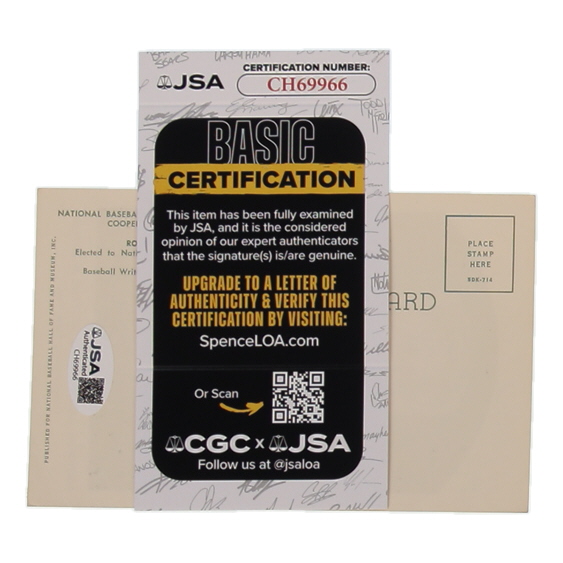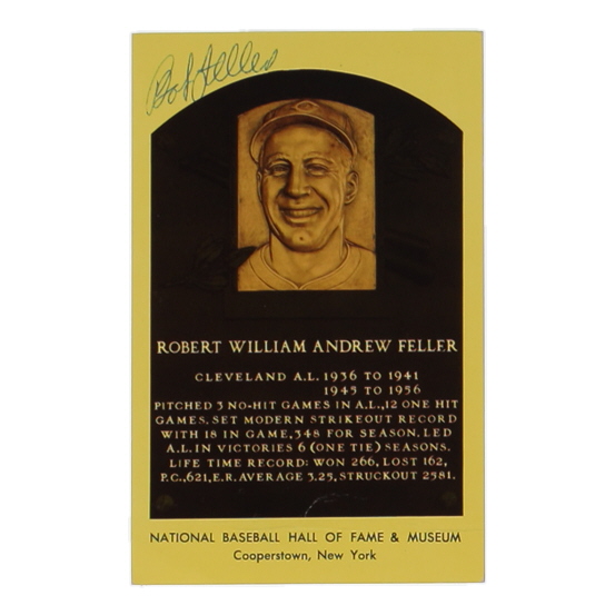 Bob Feller Signed Hall of Fame Plaque Postcard (JSA)