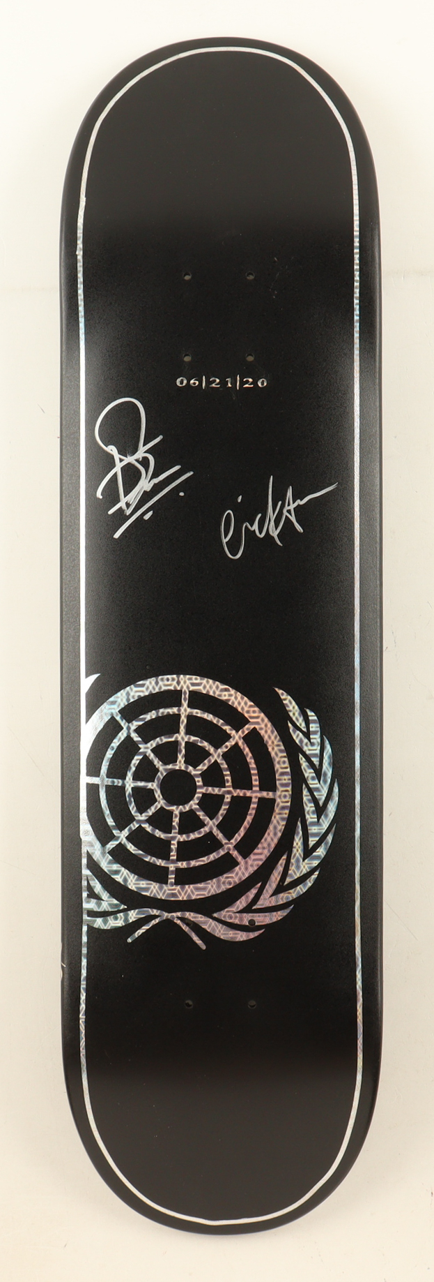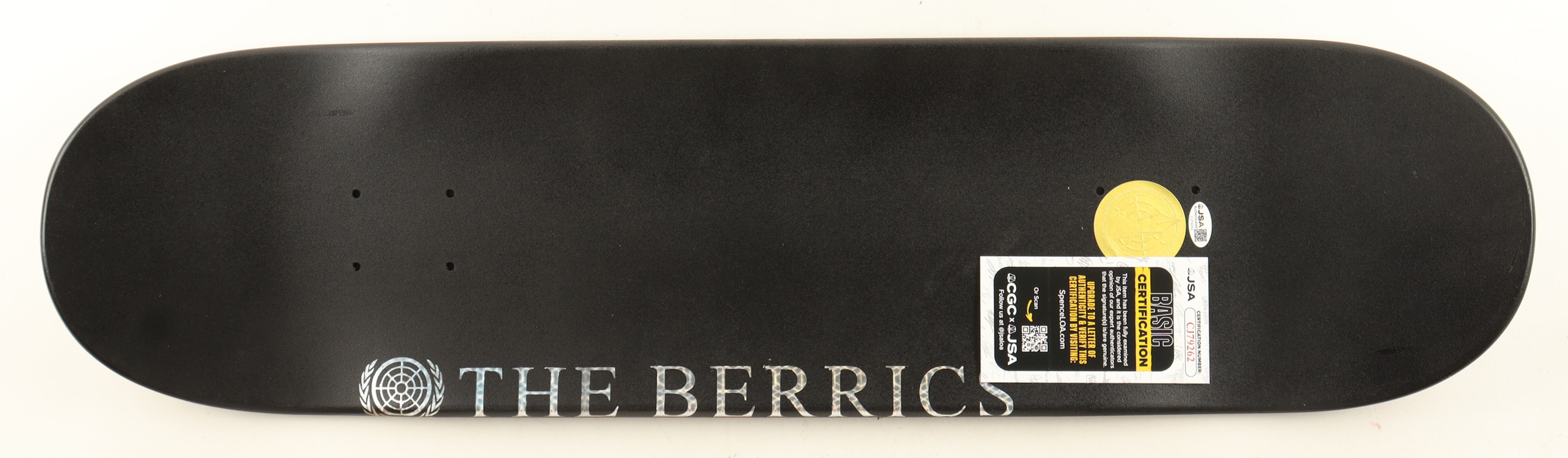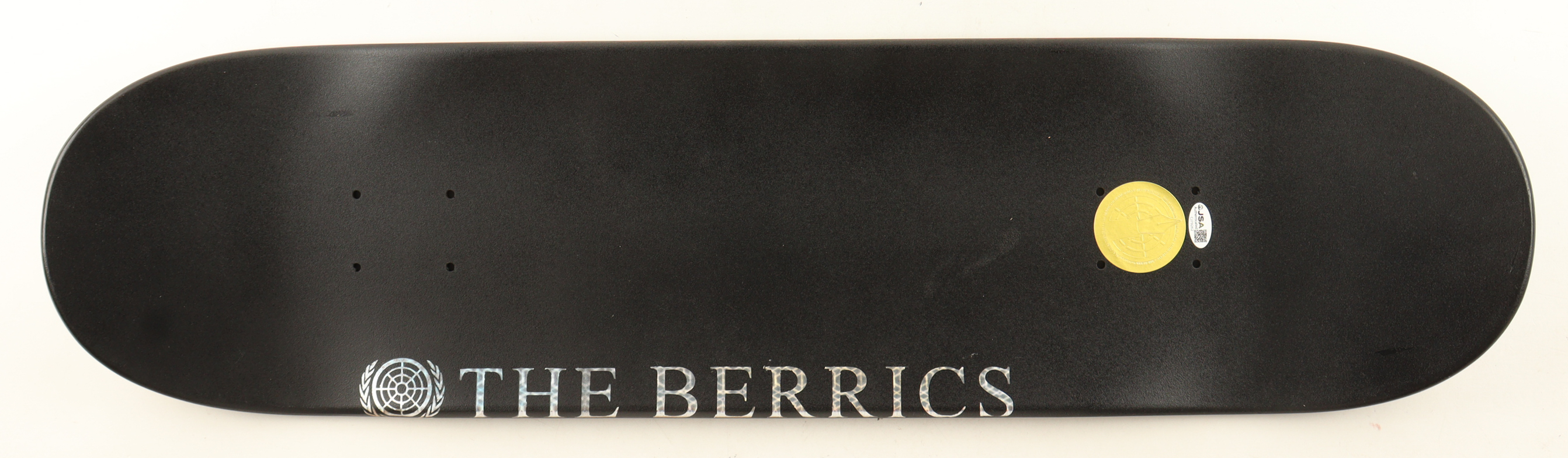 Full-size "The Berrics" Skateboard Deck measures approximately 32" in length and has been hand-signed by Eric Koston and Steve Berra.