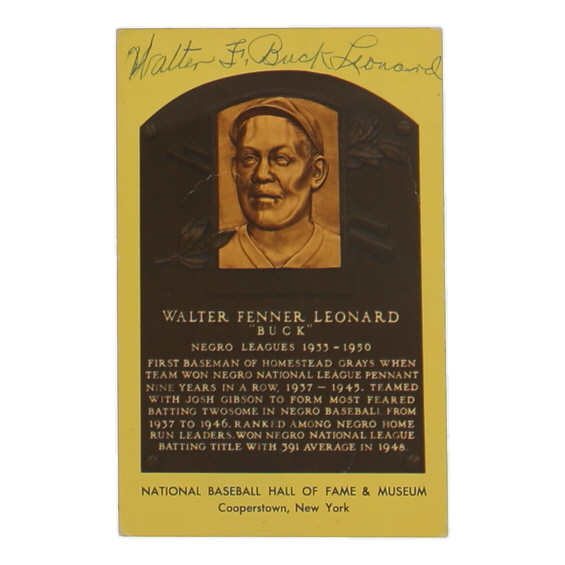 Hall of Fame Plaque Postcard has been hand-signed by Buck Leonard (D. 1997, Homestead Grays, HOF).