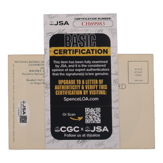 Buck Leonard Signed Hall of Fame Plaque Postcard (JSA)