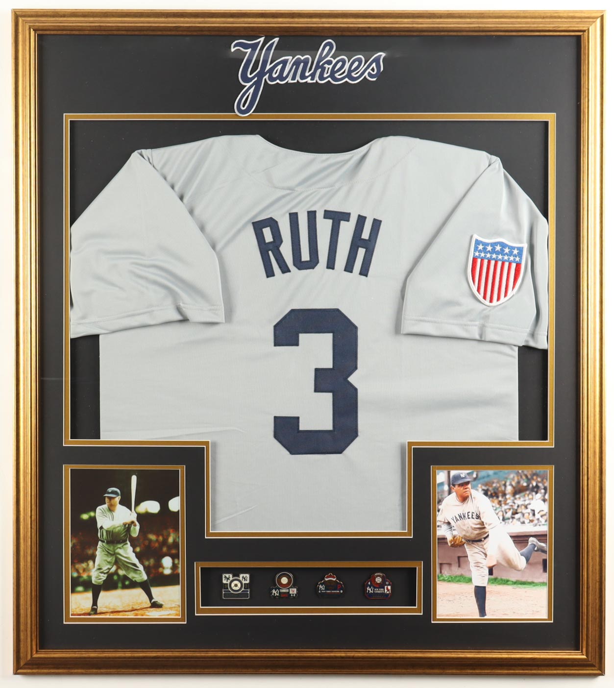 Babe Ruth Custom Framed Jersey Display With (4) World Series Pins