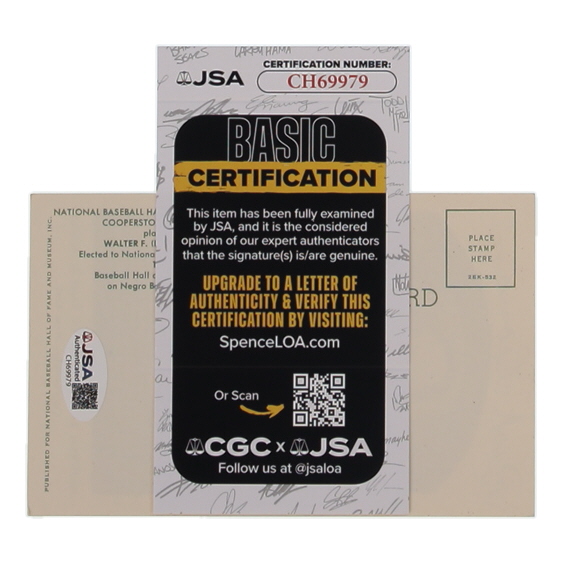 Buck Leonard Signed Hall of Fame Plaque Postcard (JSA)