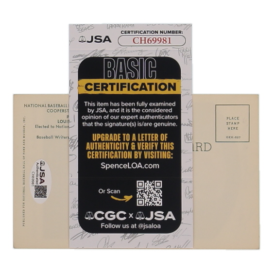 Lou Boudreau Signed Hall of Fame Plaque Postcard (JSA)