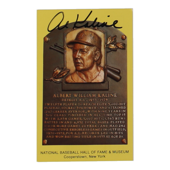 Al Kaline Signed Hall of Fame Plaque Postcard (JSA)