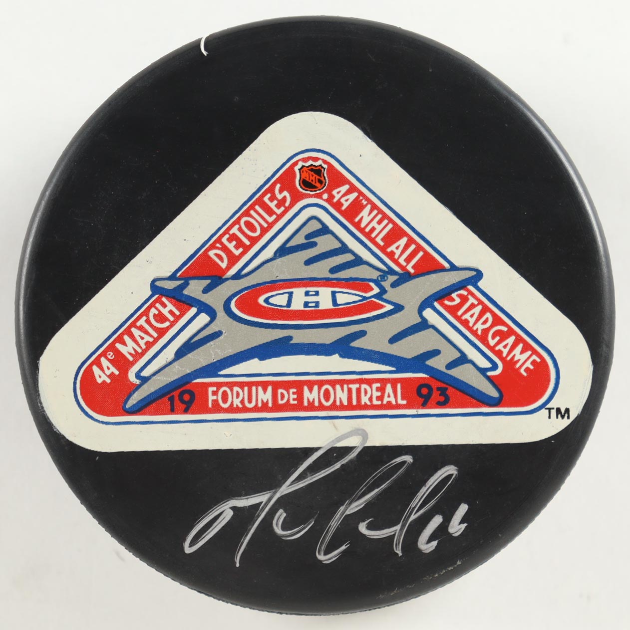 1993 All-Star Game logo hockey puck. Hand-signed by Mario Lemieux (Pittsburgh Penguins, HOF).