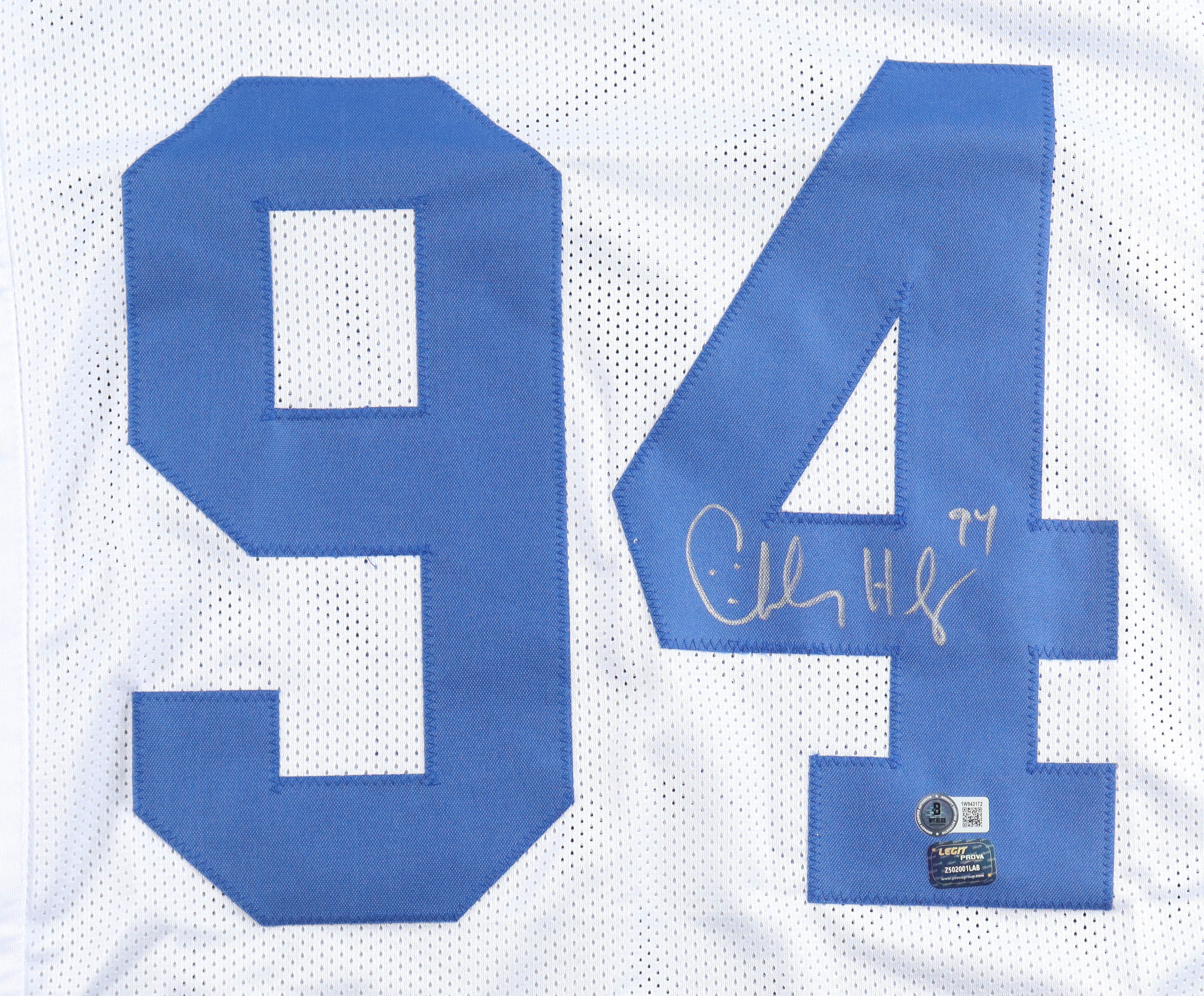 Custom jersey with everything sewn on, size XL. Hand-signed by Charles Haley (HOF).