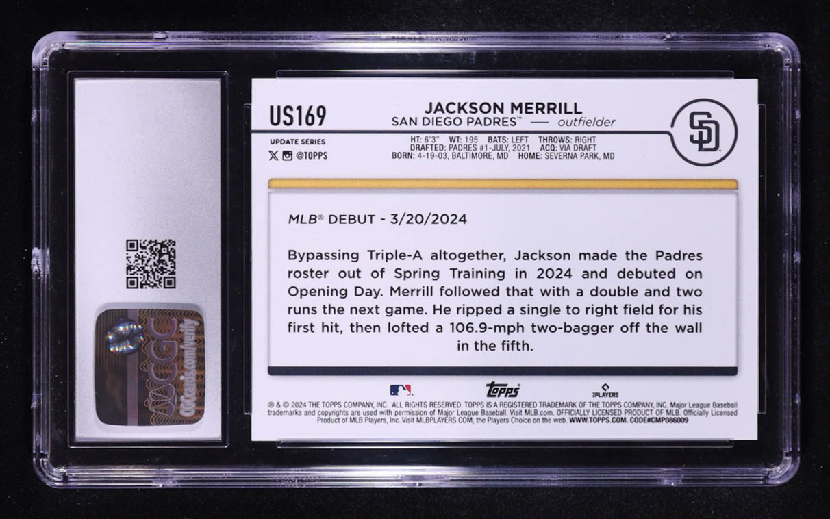Jackson Merrill 2024 Topps Update Aqua #US169 RC (CGC 10)