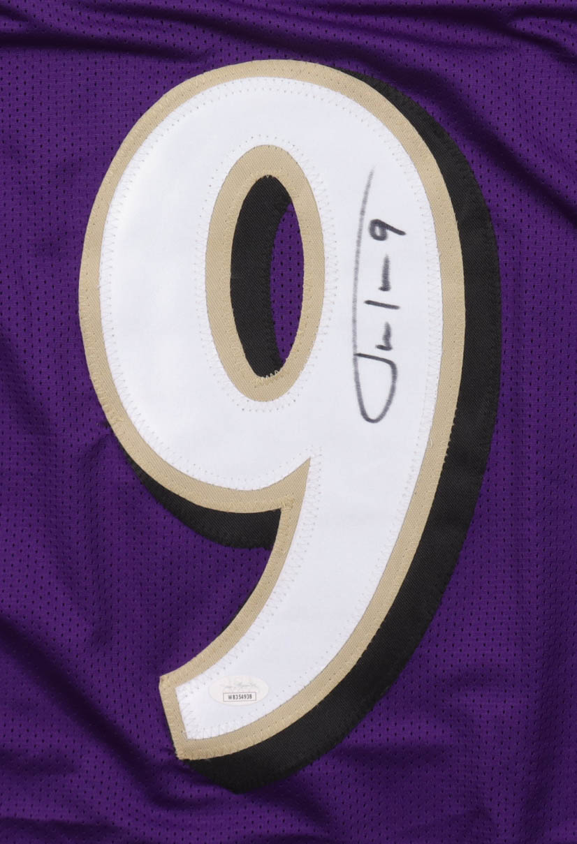 Custom jersey with everything sewn on, size XL. Hand-signed by Justin Tucker (Baltimore Ravens).