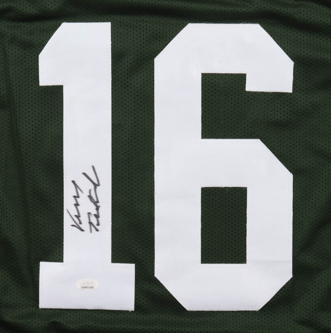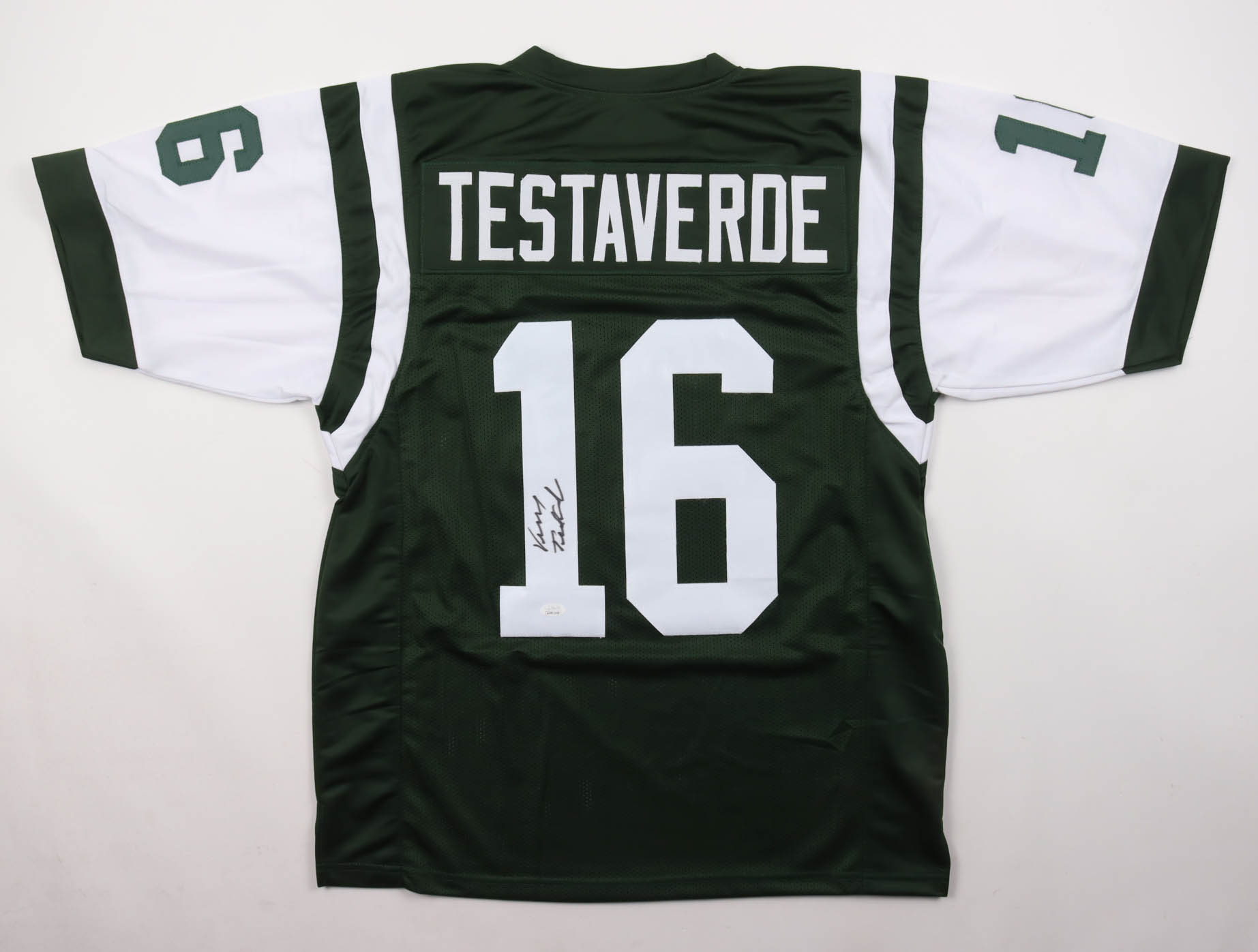 Custom jersey with everything sewn on, size XL. Hand-signed by Vinny Testaverde (New York Jets).