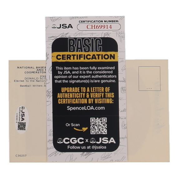 Don Drysdale Signed Hall of Fame Plaque Postcard (JSA)
