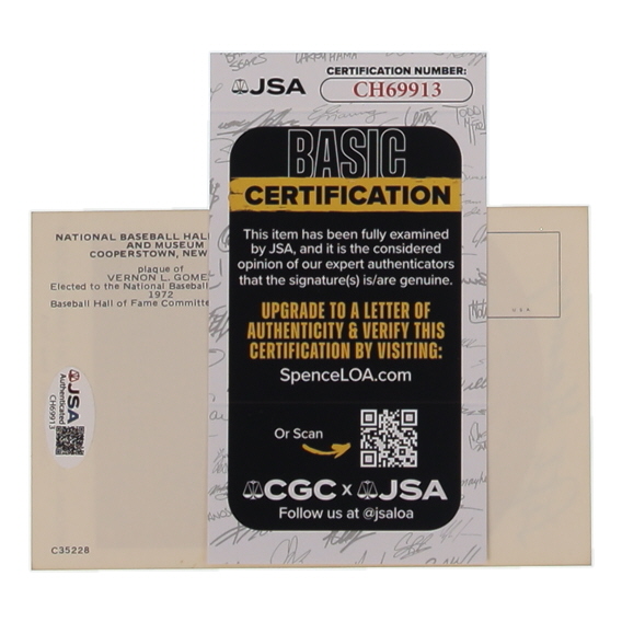 Lefty Gomez Signed Hall of Fame Plaque Postcard (JSA)