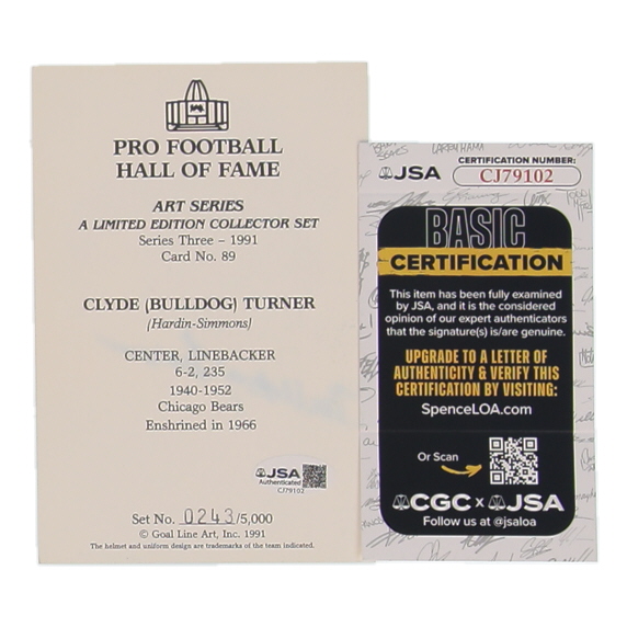 Bulldog Turner Signed LE Bears Pro Football Hall of Fame Art Series Goal Line Football Card (JSA)