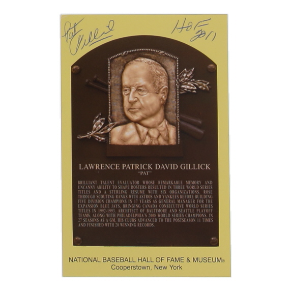 Pat Gillick Signed Hall of Fame Plaque Postcard Inscribed "HOF 2011" (JSA)