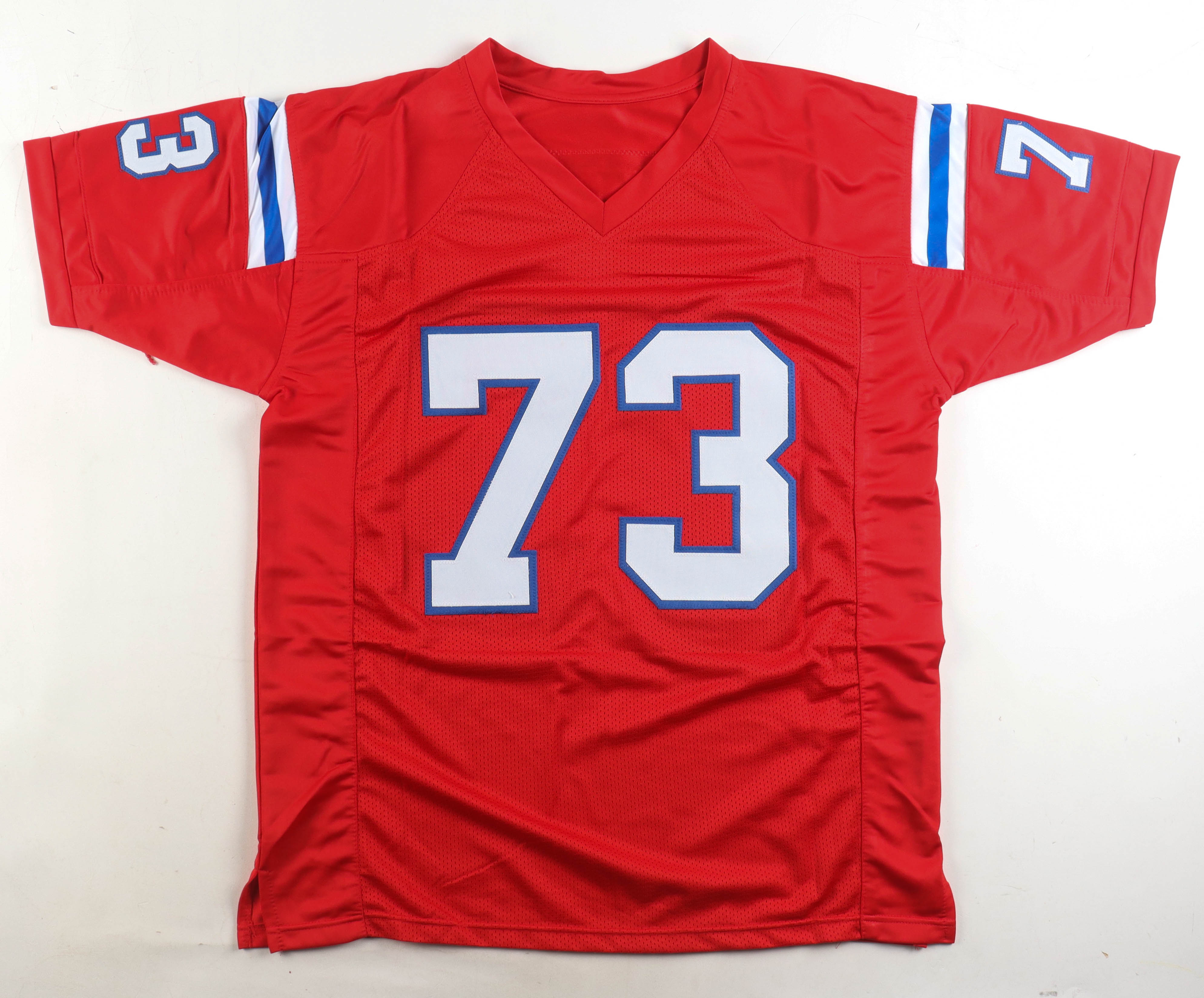 Custom jersey with everything sewn on, size XL. Hand-signed and inscribed by John Hannah (HOF).