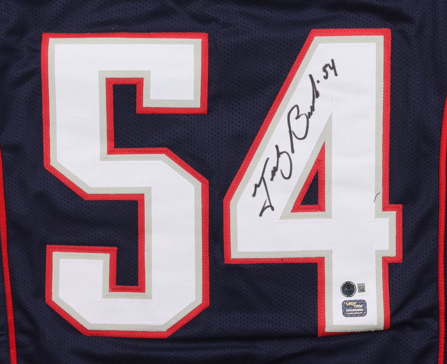 Custom jersey with everything sewn on, size XL. Hand-signed by Tedy Bruschi (New England Patriots).
