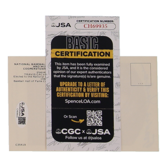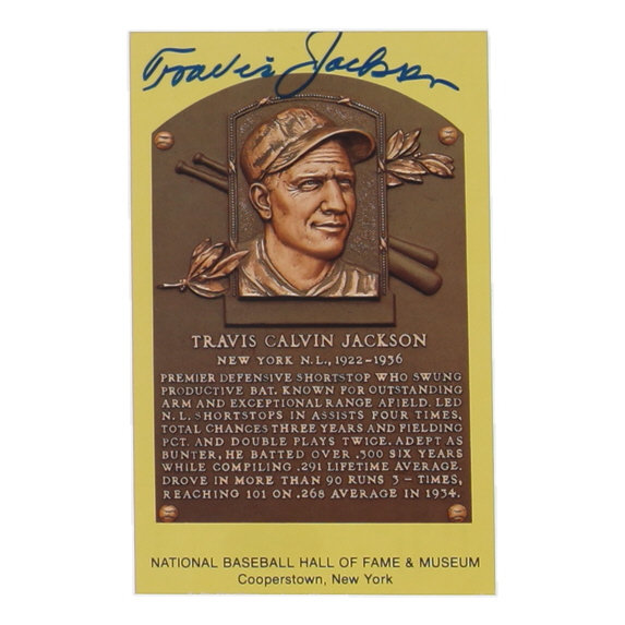 Travis Jackson Signed Hall of Fame Plaque Postcard (JSA)