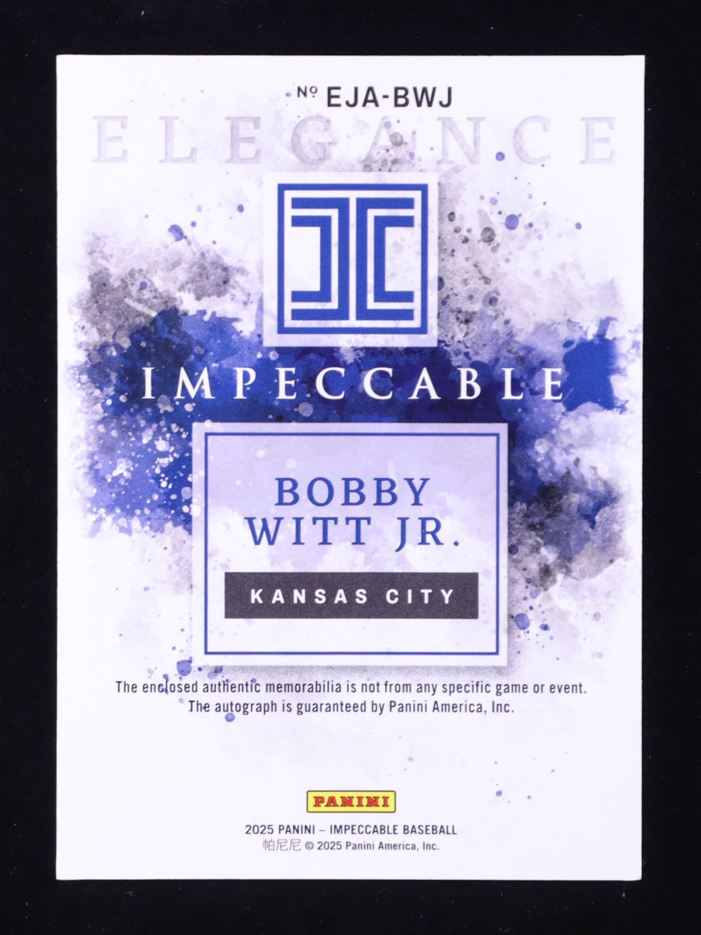 Bobby Witt Jr. 2025 Panini Impeccable Elegance Jersey Autographs Holo Silver #60 #21/25