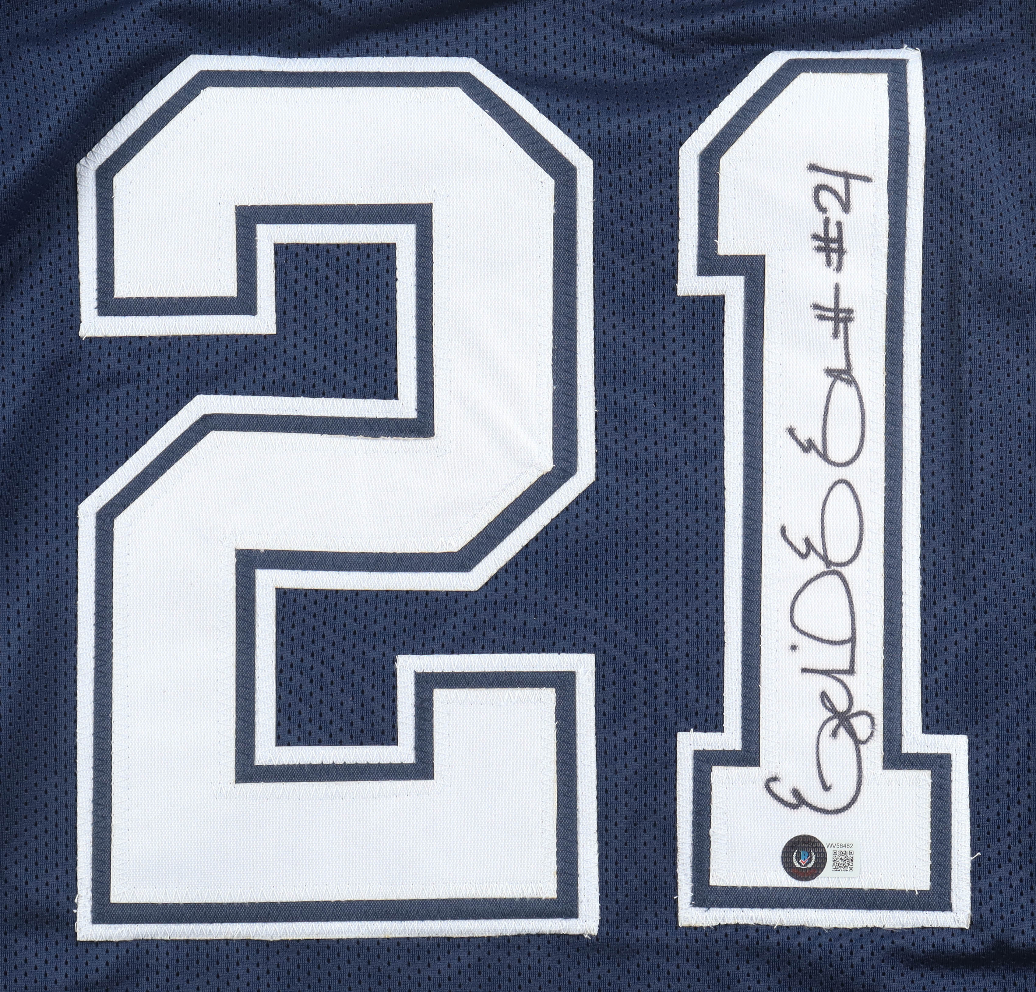 Custom jersey. Everything sewn on, size XL. Has been hand-signed by Ezekiel Elliott.