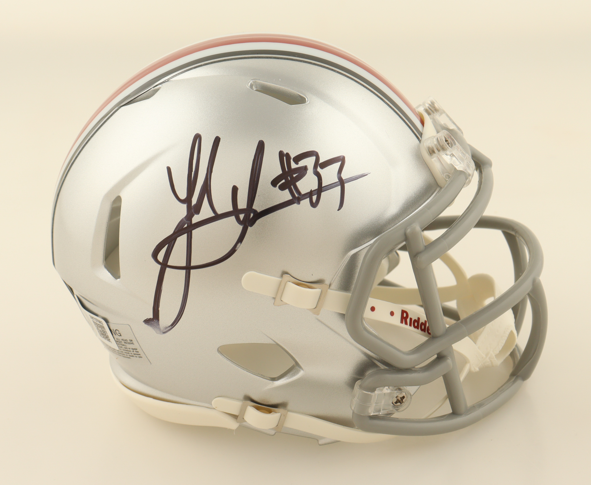 Riddell Ohio State Buckeyes Speed mini helmet. Hand-signed by Jack Sawyer. Please note, the signature is smudged.