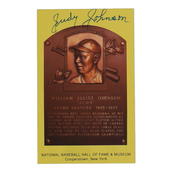 Hall of Fame Plaque Postcard has been hand-signed by Judy Johnson (D. 1989, Homestead Grays, HOF).