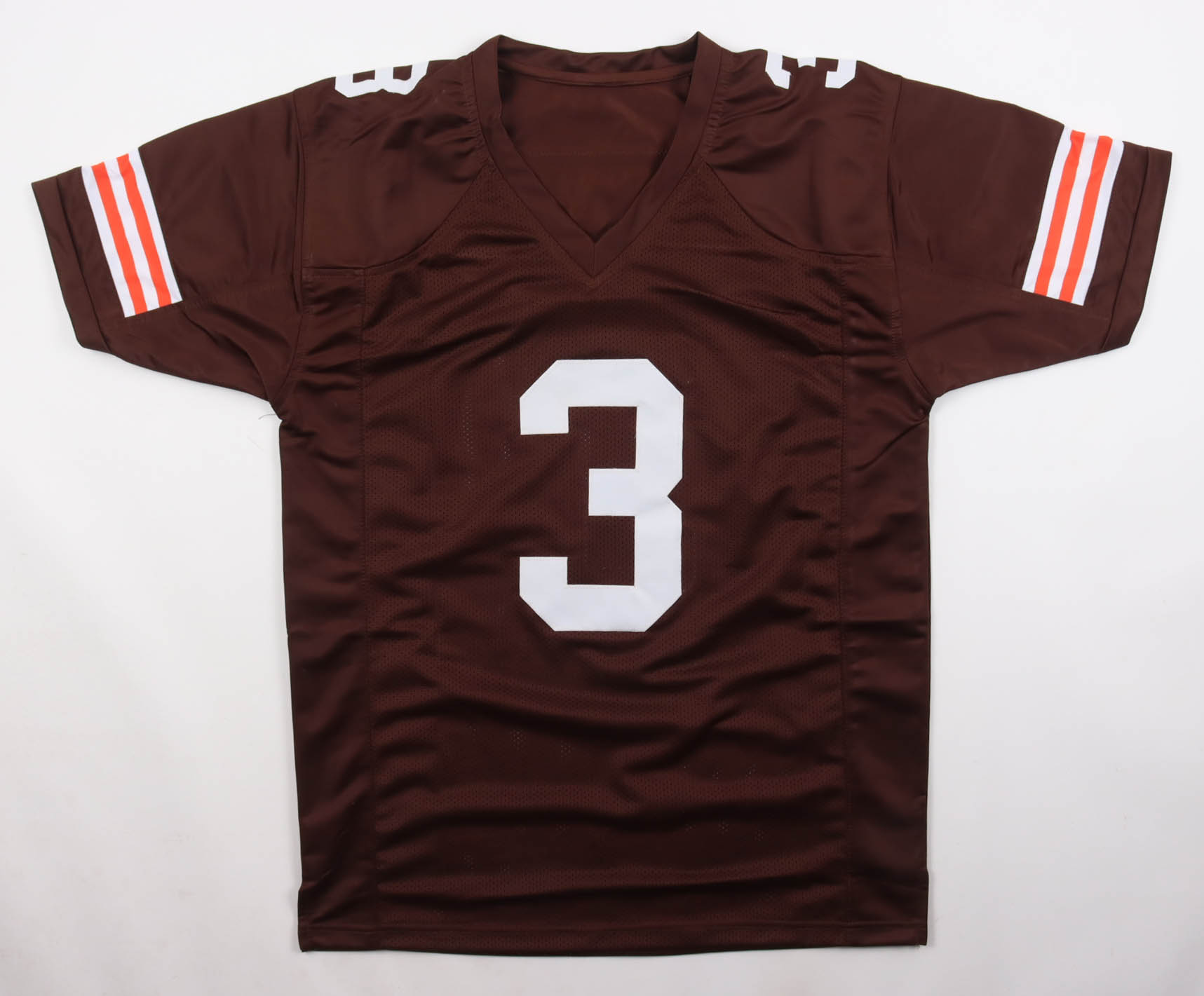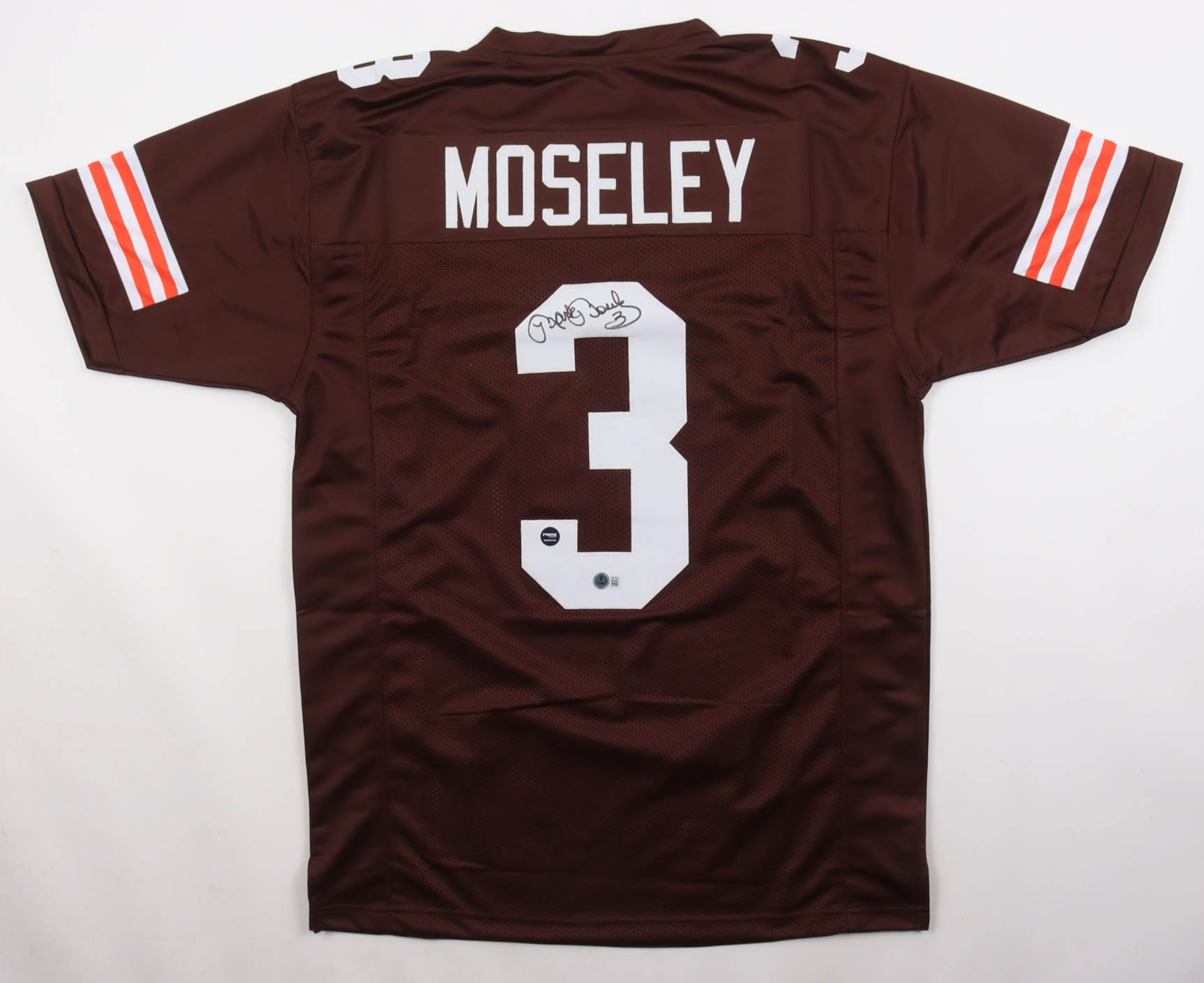 Custom jersey with everything sewn on, size XL. Hand-signed and inscribed by Mark Moseley (Cleveland Browns).