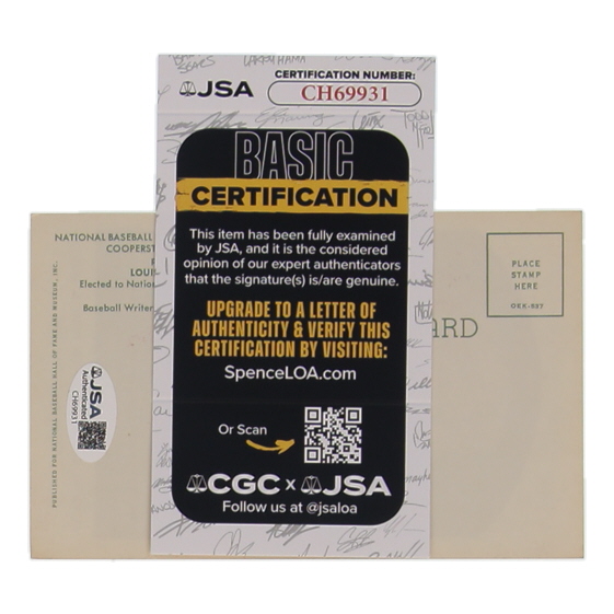 Lou Boudreau Signed Hall of Fame Plaque Postcard (JSA)