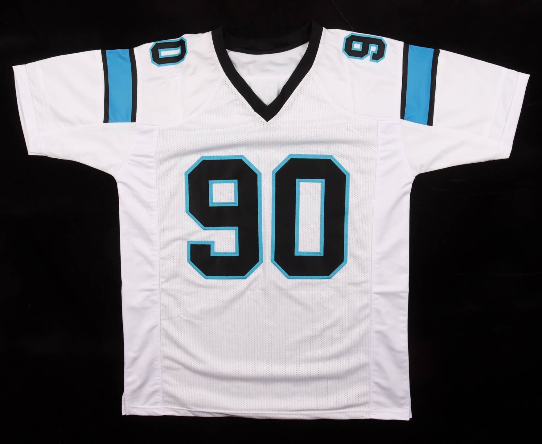 Custom jersey with everything sewn on, size XL. Hand-signed by Julius Peppers (HOF).