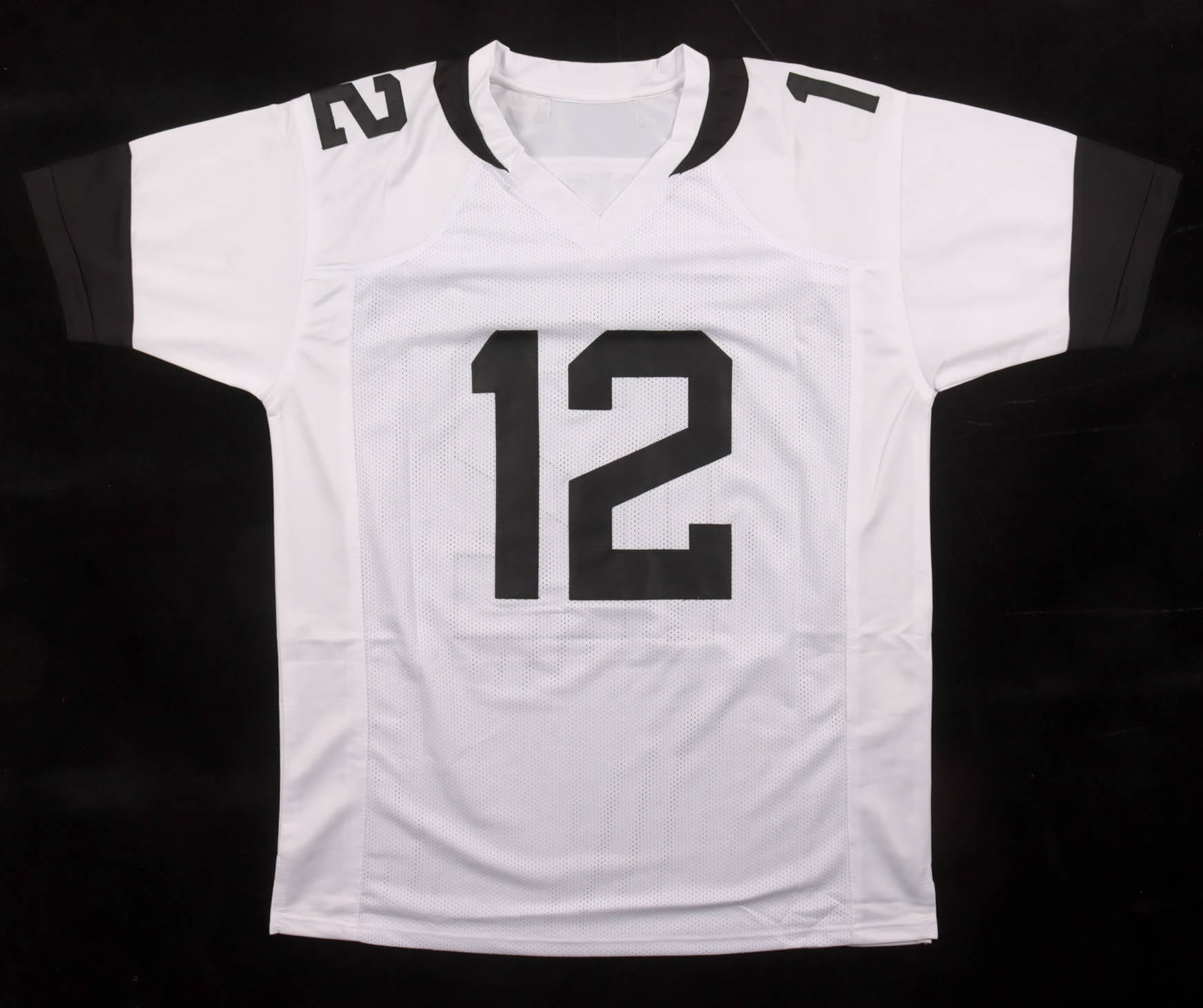 Custom jersey with everything sewn on, size XL. Hand-signed by Travis Hunter.