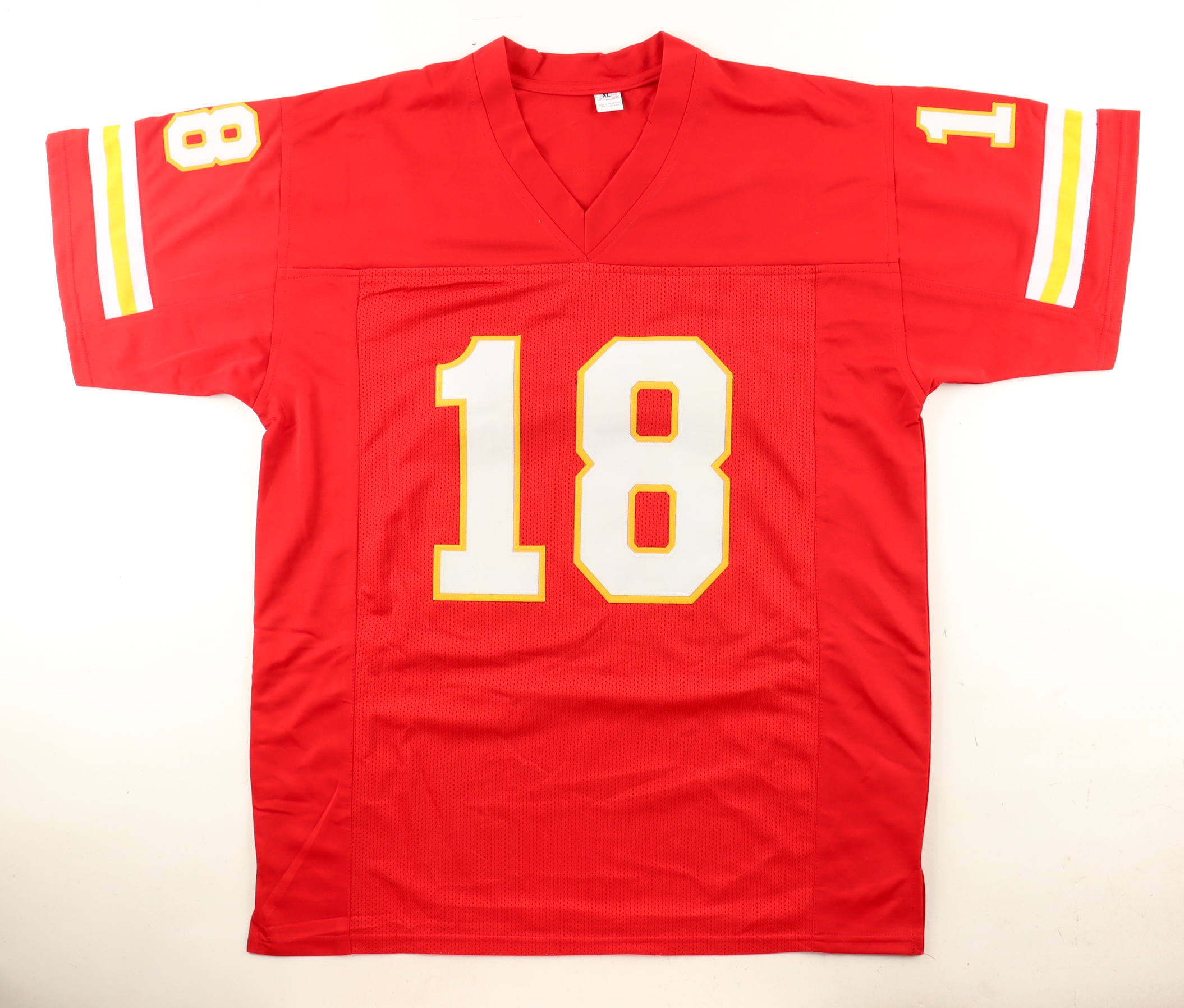 Custom jersey. Everything printed on, size XL. Hand-signed and inscribed by Emmitt Thomas.