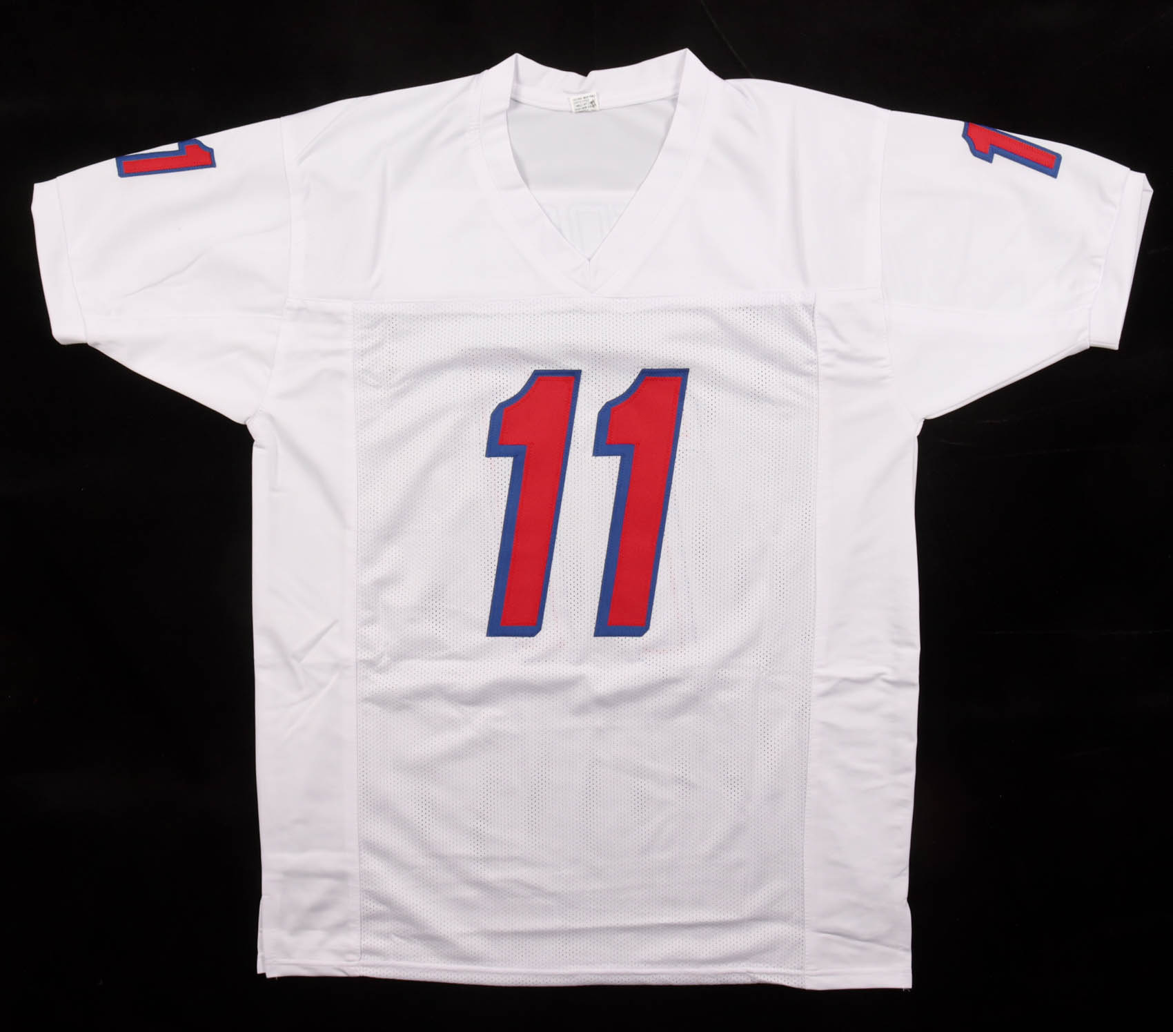 Custom jersey with everything sewn on, size XL. Hand-signed by Drew Bledsoe.