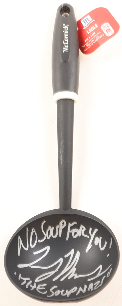 McCormick soup ladle has been hand-signed and inscribed by Larry Thomas (Yev Kassem / The Soup Nazi).