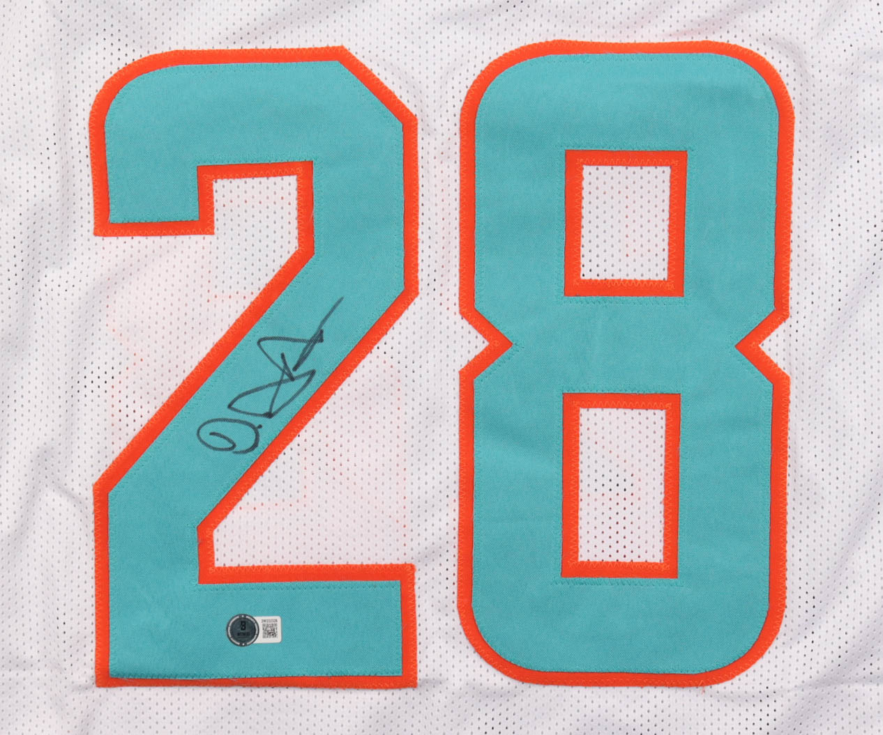 Custom jersey with everything sewn on, size XL. Has been hand-signed by De'Von Achane.