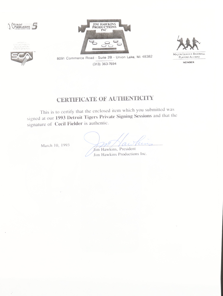Cecil Fielder Signed Tigers 11x11 Art Print by Murray Tinkelman (JSA)