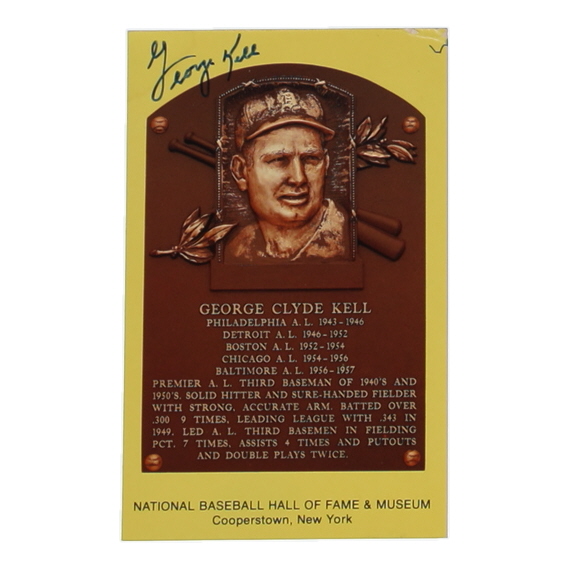 Hall of Fame Plaque Postcard has been hand-signed by George Kell (D. 2009, Detroit Tigers, HOF).