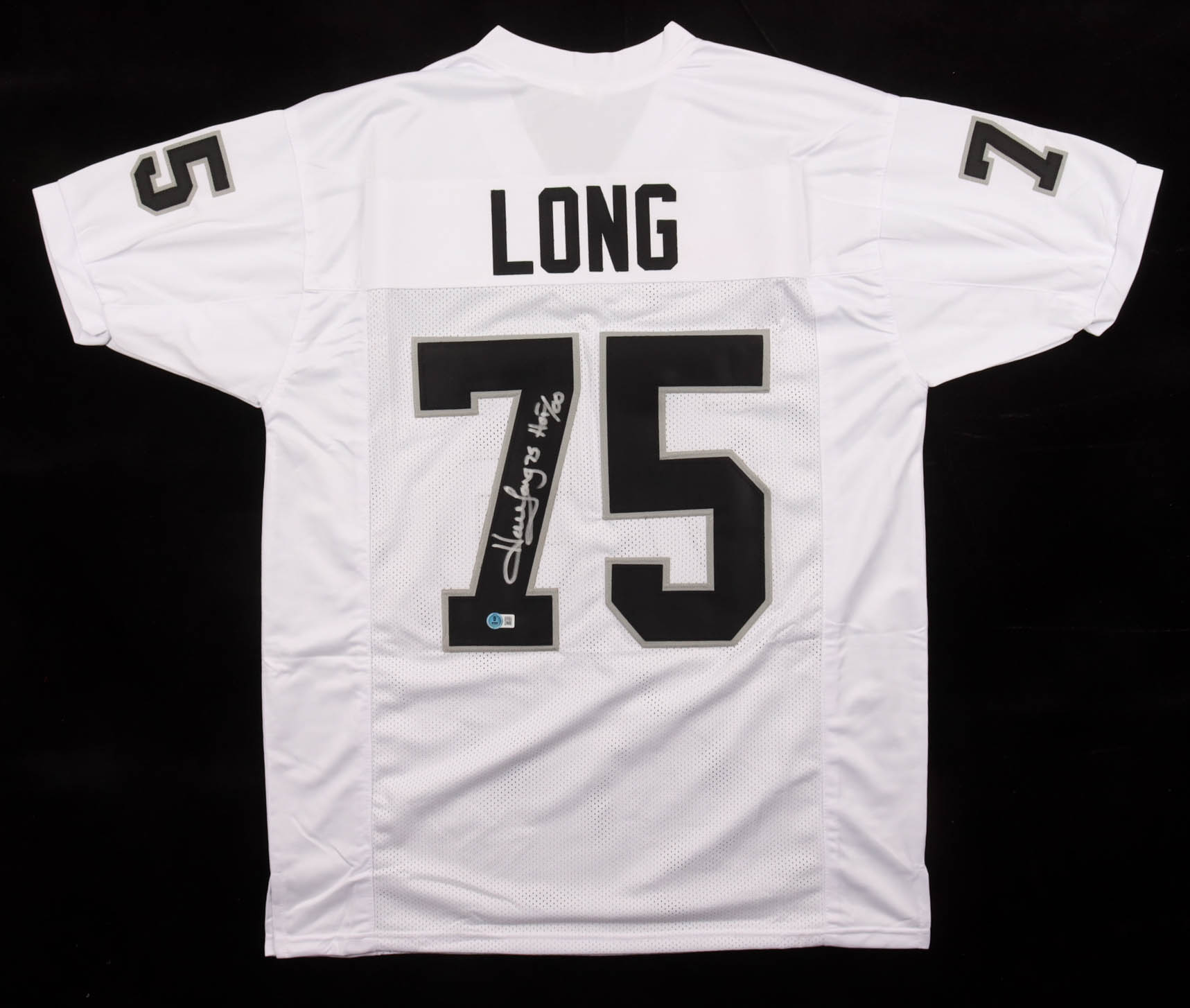 Custom jersey with everything sewn on, size XL. Hand-signed and inscribed by Howie Long (Oakland Raiders, HOF).