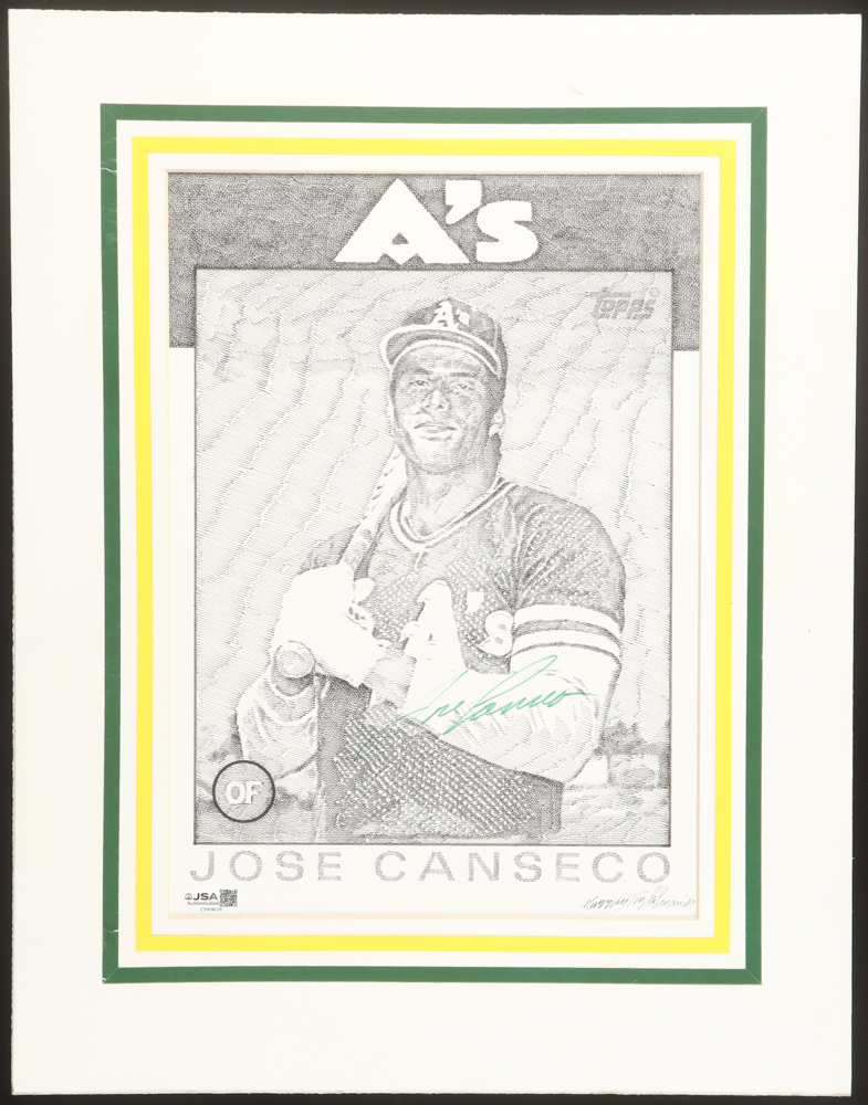 Jose Canseco Signed Athletics 13x17 Custom Matted Art Print by Murray Tinkelman (JSA)