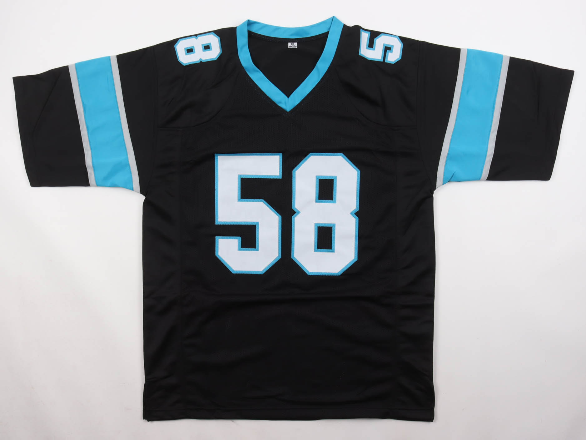 Custom jersey with everything sewn on, size XL. Hand-signed by Thomas Davis.