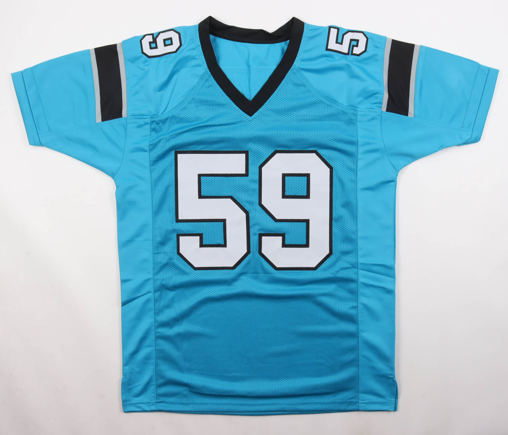 Custom jersey with everything sewn on, size XL. Hand-signed by Luke Kuechly.