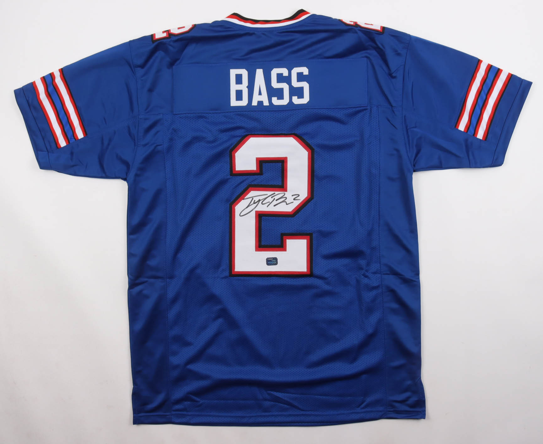 Custom jersey. Everything is sewn on, size XL. Hand-signed by Tyler Bass.