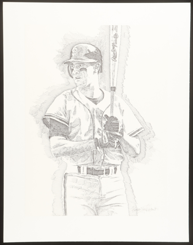 Matted print measures approximately 13" x 17" in size and features an art print that depicts Will Clark (San Francisco Giants) as is hand-signed by the artist, Murray Tinkelman. Please note, there is slight scuffing and corner wear on the matting.