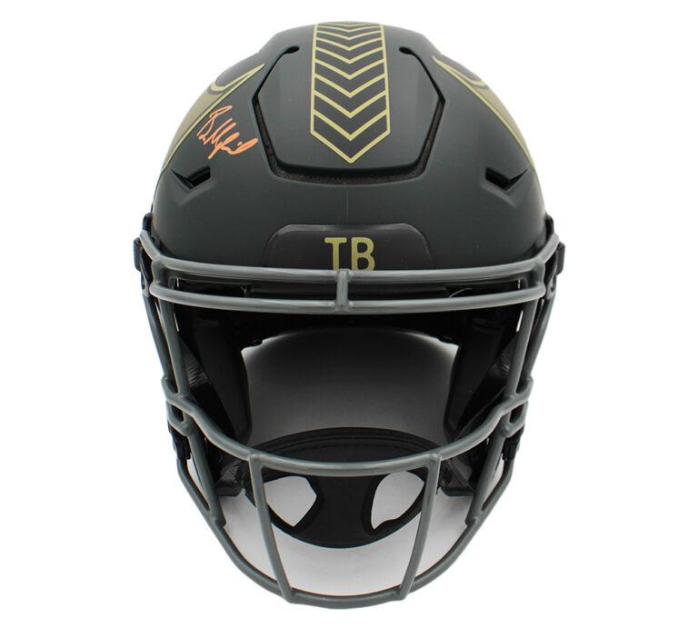 Riddell Tampa Bay Buccaneers full-size authentic on-field salute to service alternate speedflex helmet. Hand-signed by Baker Mayfield.