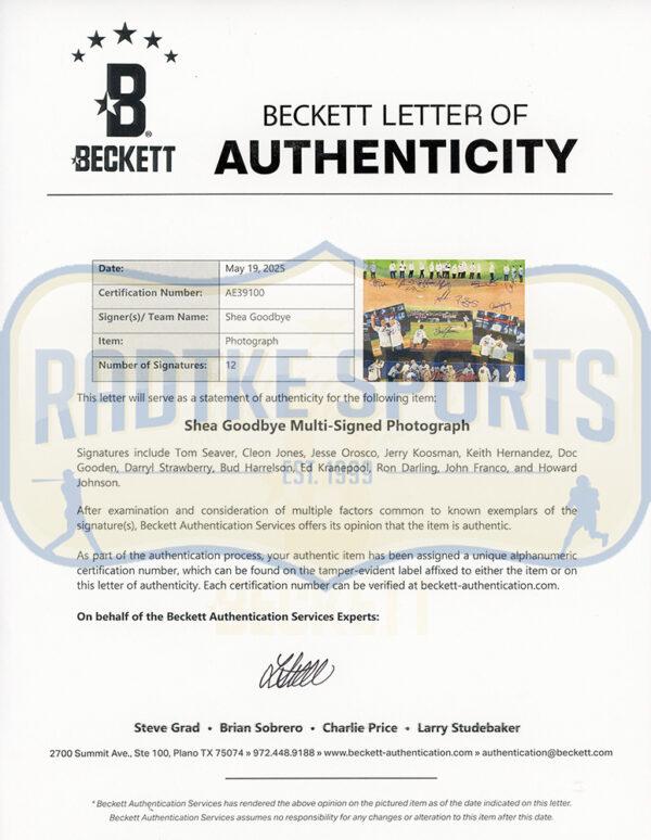Mets "Shea Goodbye" 16x20 Photo Signed By (12) with Tom Seaver, Keith Hernandez, Doc Gooden (Beckett)