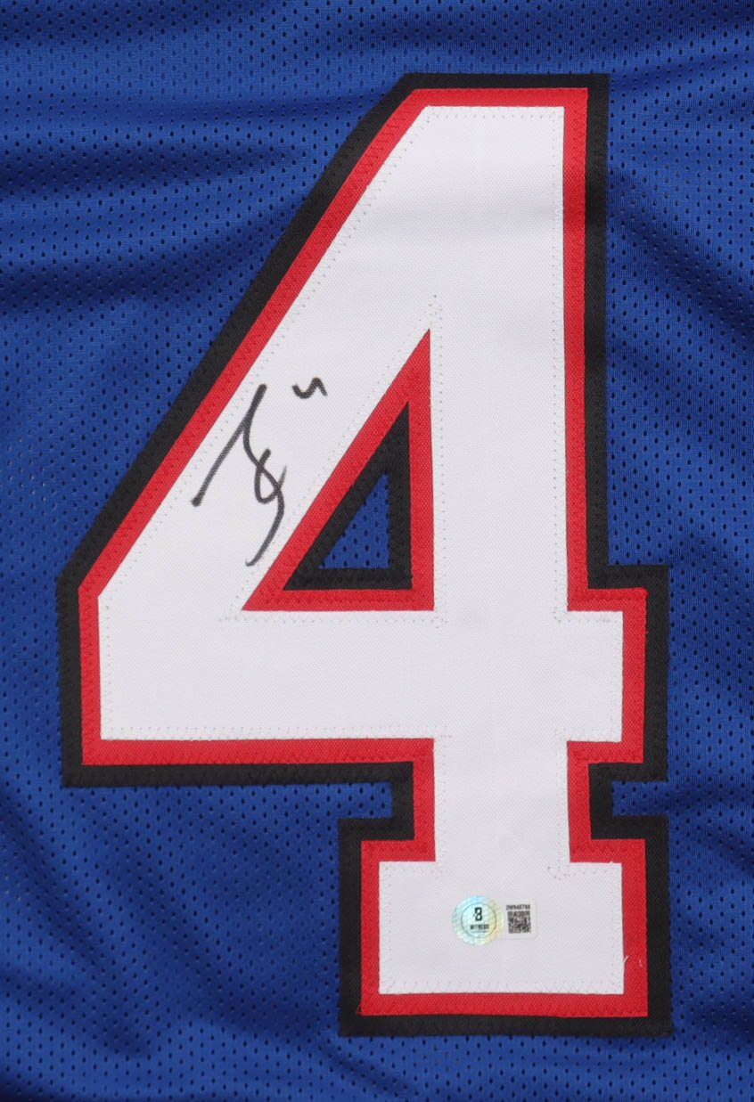 Custom jersey. Everything sewn on, size XL. Hand-signed by James Cook.