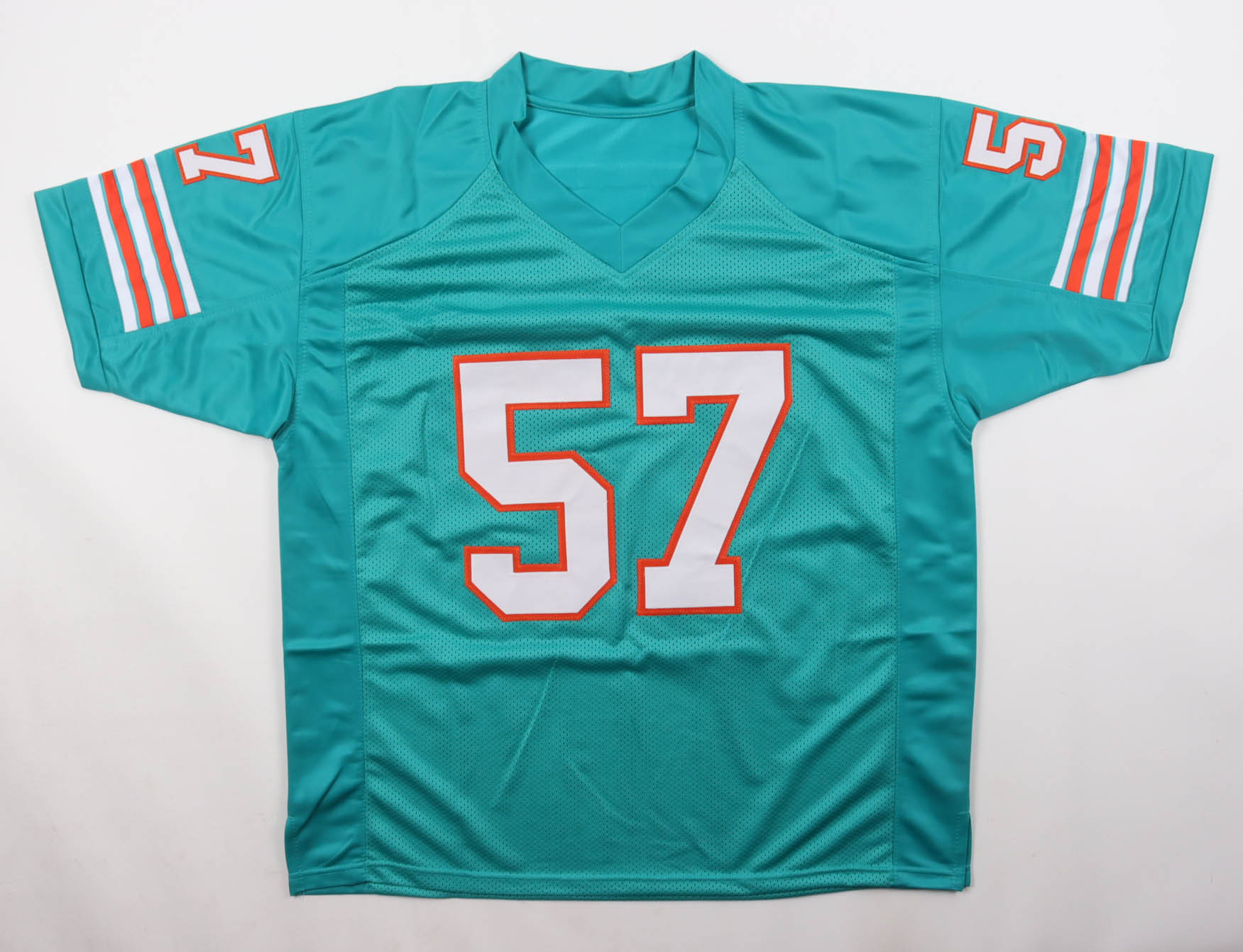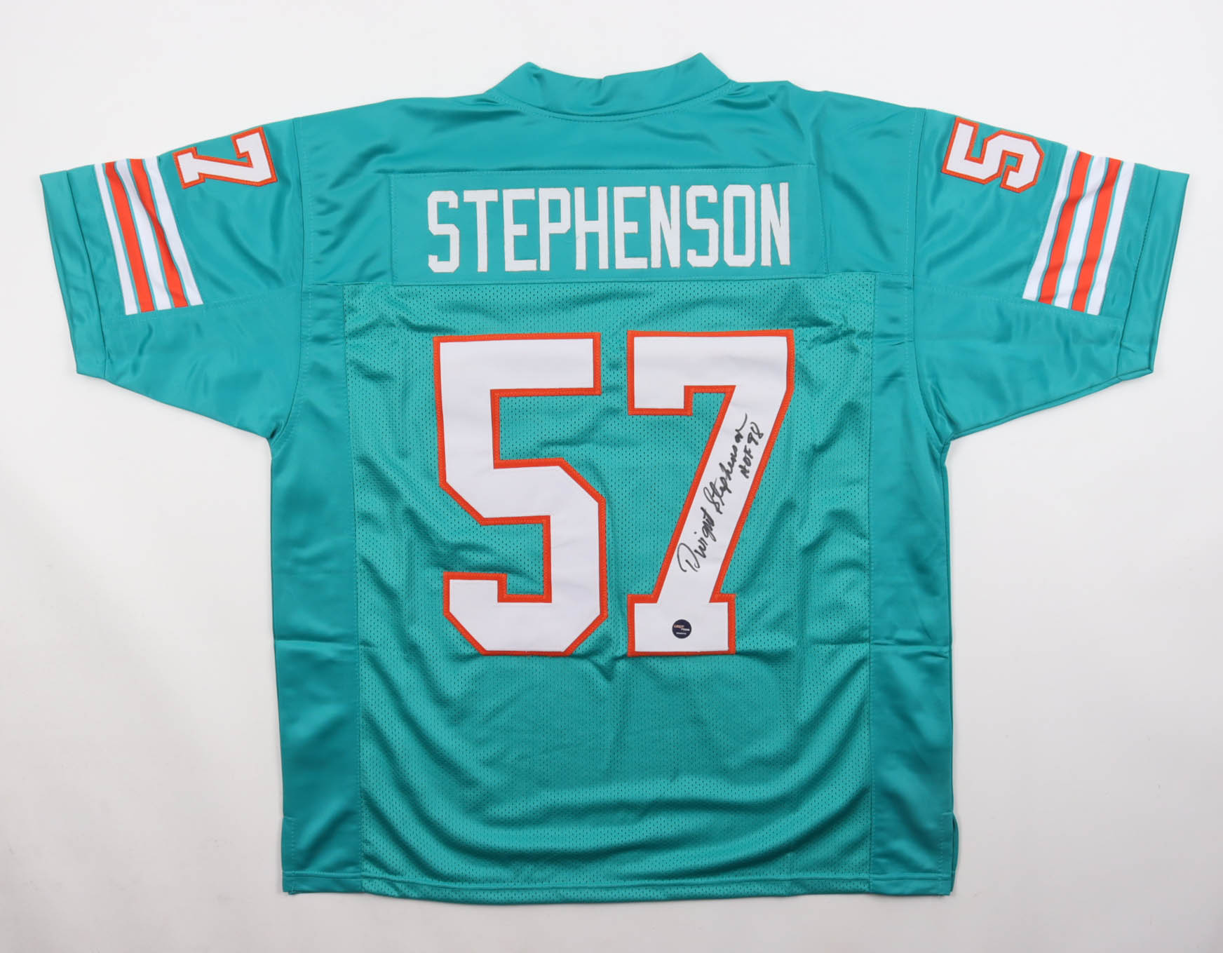 Custom jersey with everything sewn on, size XL. Hand-signed and inscribed by Dwight Stephenson (HOF).